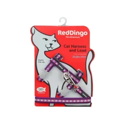 Red Dingo Cat Harness And Lead Reflective Fish Purple