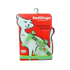 Red Dingo Cat Harness And Lead Stars Turquoise On Lime Green