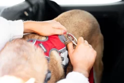 Red Dingo Car Restraints are designed to restrict the movement of dogs travelling in a car. One end features a harness attachment clip and the other a universal seatbelt clip. Suitable for use with most seat belt buckles. Only use with a harness, do not use with a collar. Not tested to withstand the impact of an accident.