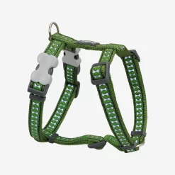 Red Dingo Dog Harness Reflective Bones Green